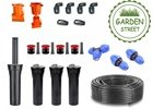 - Kompletné riešenie: Každý balíček obsahuje všetky potrebné komponenty na zavlažovanie – hadice, postrekovače, pripojenie postrekovačov a ďalšie príslušenstvo.