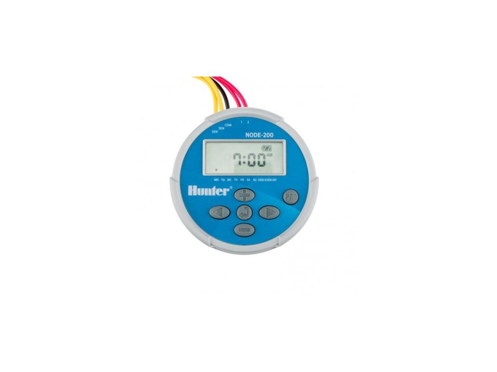 Hunter NODE je určený na zavlažovanie malých záhrad, kde nie je k dispozícii sieťové pripojenie alebo by bolo príliš nákladné ich vybavenie. Je to jeden z najspoľahlivejších a najdlhšie predávaných výrobkov na trhu. Tento typ ovládača je k dispozícii vo verziách 1, 2, 4 alebo 6 zón. Ovládač NODE má špeciálny kryt, krytie IP68 a špeciálne gumové viečko chráni jeho jadro, takže ho možno nainštalovať do ventilovej šachty (aj keď je nainštalovaný pod vodou). Ovládač môže byť namontovaný priamo na solenoid elektroventilu alebo dokonca namontovaný na boku ventilovej šachty pomocou príslušných konzol. V opačnom prípade je maximálna vzdialenosť medzi ovládačom a elektroventilmi je 30 m. Vďaka veľmi jednoduchému a prehľadnému návodu môže každý ľahko pochopiť, ako nastaviť programy, spustiť alebo zastaviť zavlažovanie. 2x 9 V batérie (nie sú súčasťou) zaručujú celosezónnu prevádzku. Spolu s voliteľným solárným panelom SPNODE sa dá šetriť batérie a nabíjať ju.