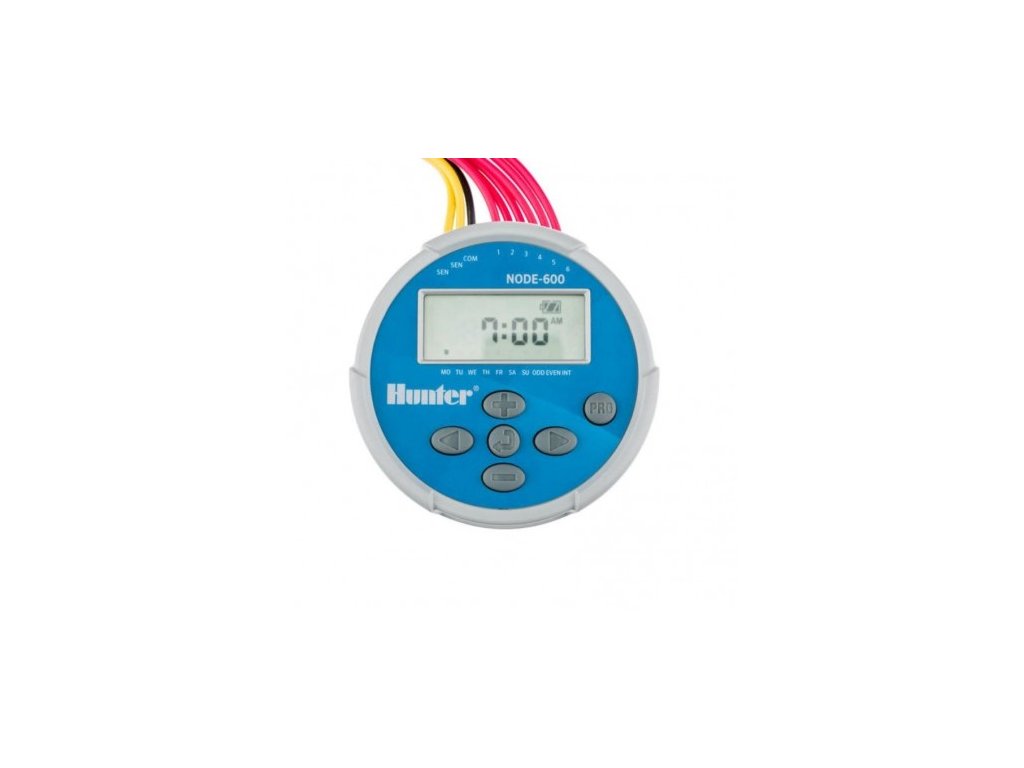 Hunter NODE-600 je 6-okruhový batériový ovládač. Vysoko spoľahlivá, univerzálna a vysoko funkčná domáca riadiaca jednotka. Je to batériový ovládač, takže môže ovládať akýkoľvek 9 V elektromagnetický ventil. Jeho programovanie je veľmi jednoduché a bolo vyvinuté tak, aby ho mohol vykonať každý. Všetky nastavenie sú ľahko čitateľné z displeja.