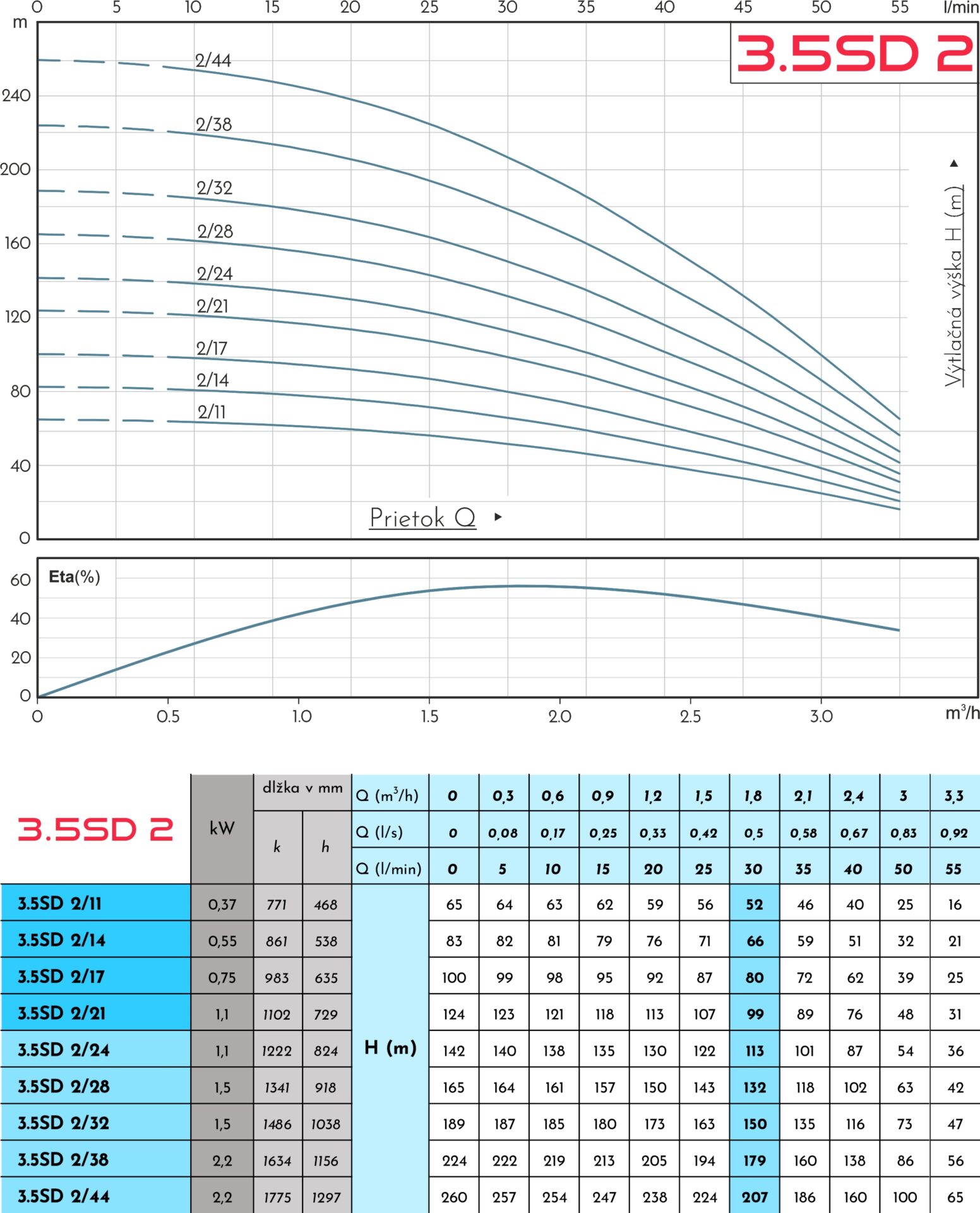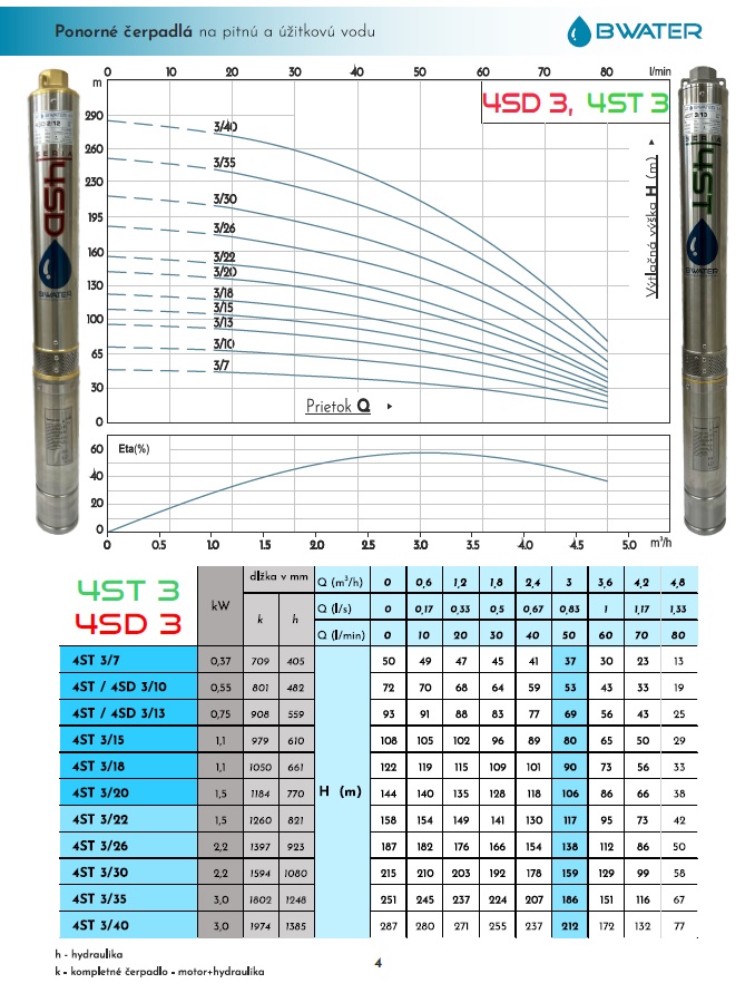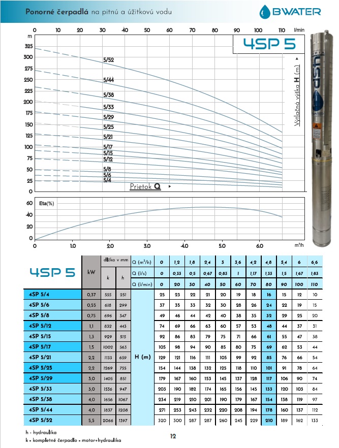 variant si volíte podľa hĺbky studne, výtlaku a požadovaného prietoku