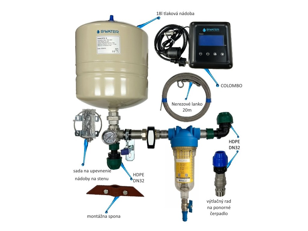 Zostava je vybavená frekvenčným meničom COLOMBO 230 V, ktorý plynule riadi otáčky čerpadla podľa aktuálneho odberu vody.