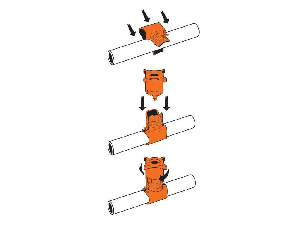 Samonavrtávacia objímka značky Dawn je ideálnym riešením pre jednoduché a rýchle pripojenie postrekovačov alebo mikrozávlahy k PE potrubiu s priemerom 25 mm. Vďaka integrovanému hrotu nie je potrebné predvŕtanie potrubia – objímka sa pripevní a automaticky vytvorí otvor pri dotiahnutí.