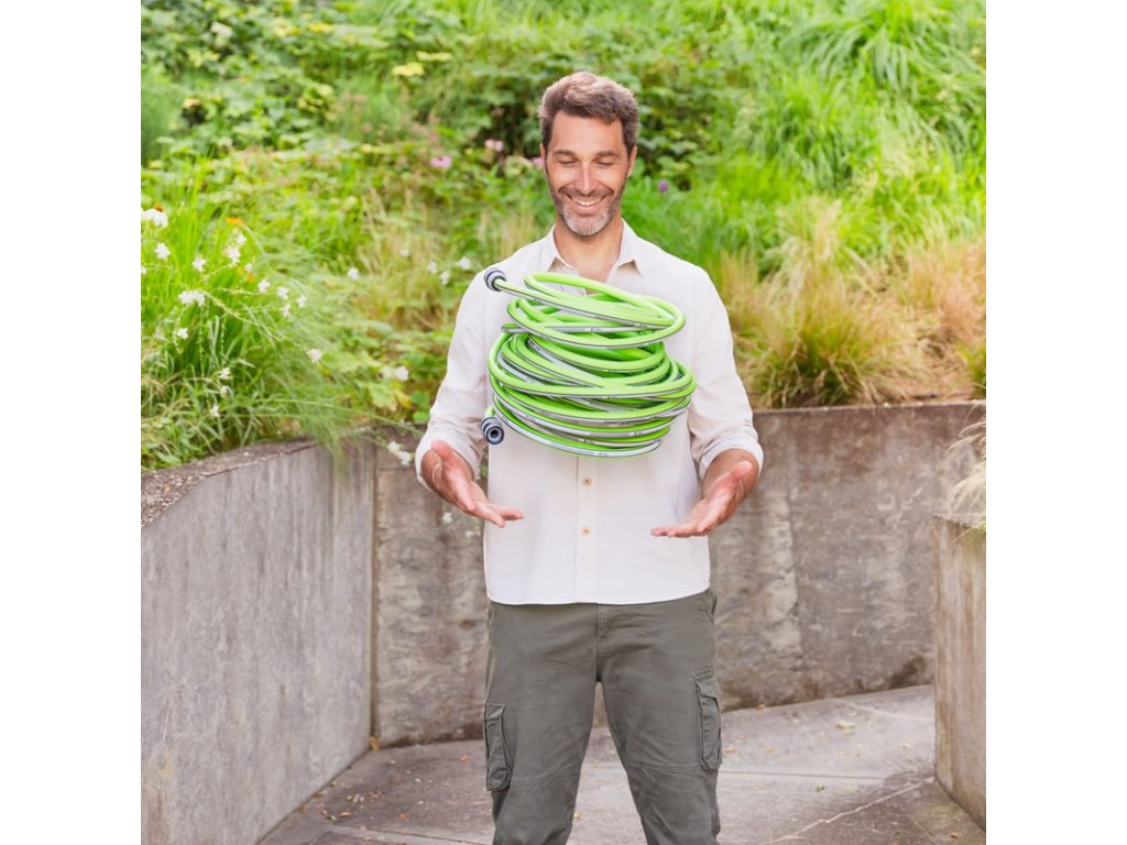 FITT KIUMA je navrhnutá pre maximálne pohodlie pri polievaní. Je výrazne ľahšia než klasické záhradné hadice, vďaka čomu sa jednoducho prenáša, rozvíja aj navíja. Aj pri dlhšom používaní nezaťažuje ruky a umožňuje plynulú prácu bez zbytočnej námahy.