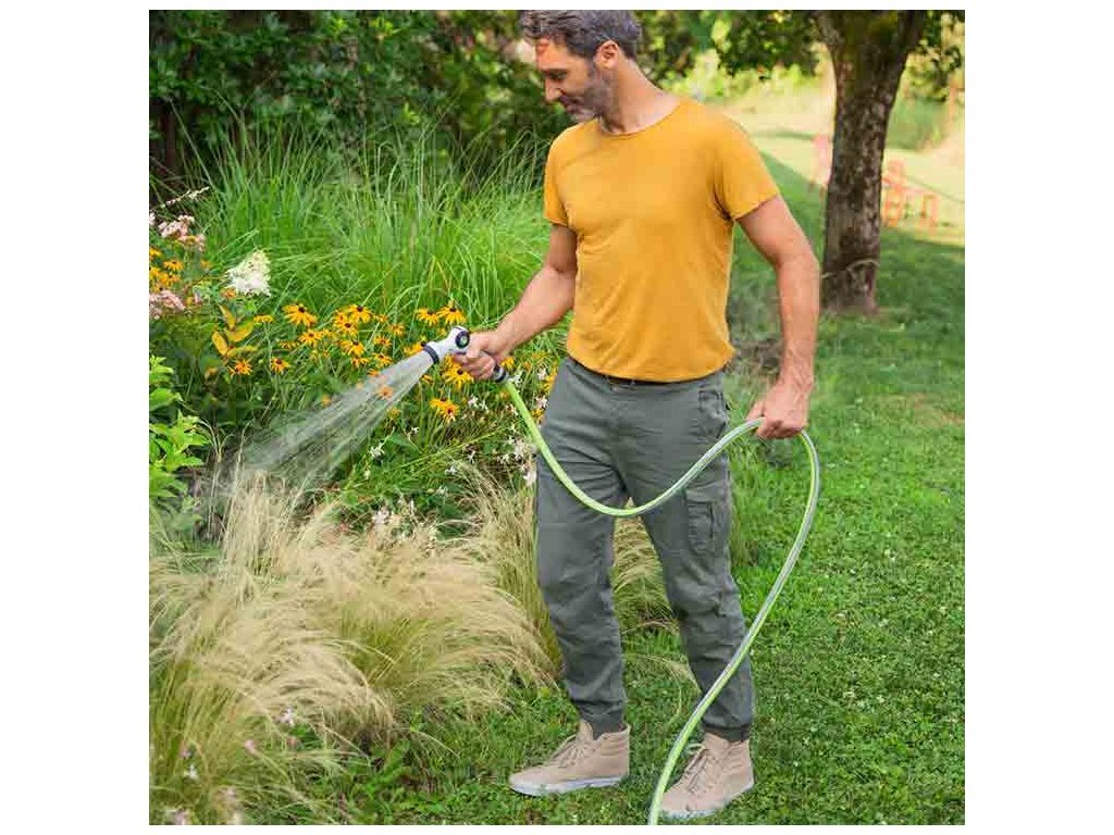 Hadica si zachováva svoj tvar aj pri ohyboch a vedení okolo záhradných prekážok. Nezalamuje sa, nekrúti a neobmedzuje prietok vody, čo zabezpečuje rovnomerné a efektívne zavlažovanie. Priemer 1/2" poskytuje optimálny prietok pre bežné záhradné použitie.