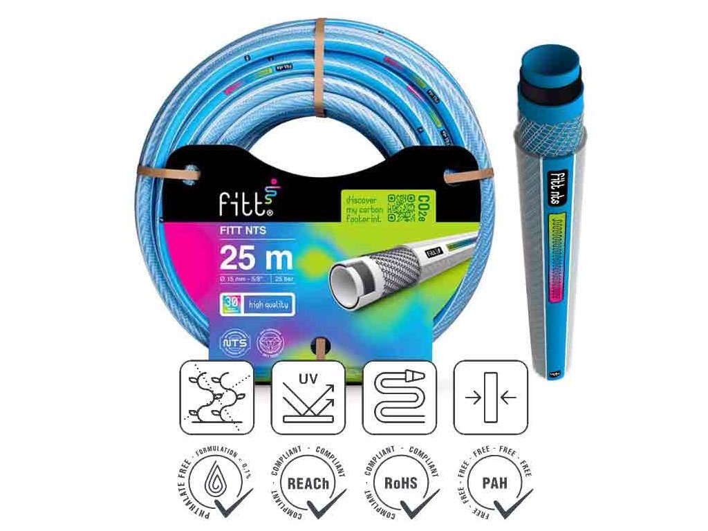 Záhradná hadica FITT NTS Jeans 1/2" s dĺžkou 25 m je navrhnutá pre intenzívne používanie v záhrade. Vďaka technológii NTS (No Torsion System) sa pri práci nekrúti a nezalamuje, takže prietok vody zostáva stabilný aj pri častom presúvaní hadice okolo záhonov, rohov a prekážok.