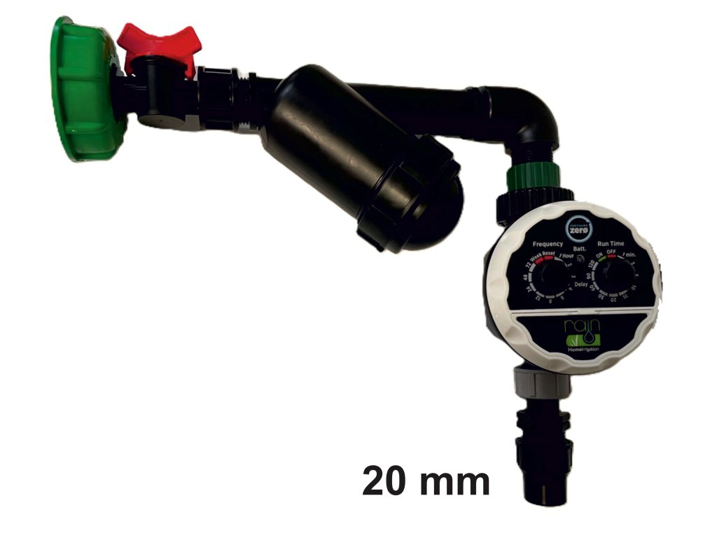 Súčasťou zostavy je aj riadiaca jednotka Rain - Zero, ktorá funguje aj pri nulovom tlaku a viete si sním naprogramovať závlahu aj so samospádom. Stačia vám k tomu dve tužkové batérie na celú sezónu.