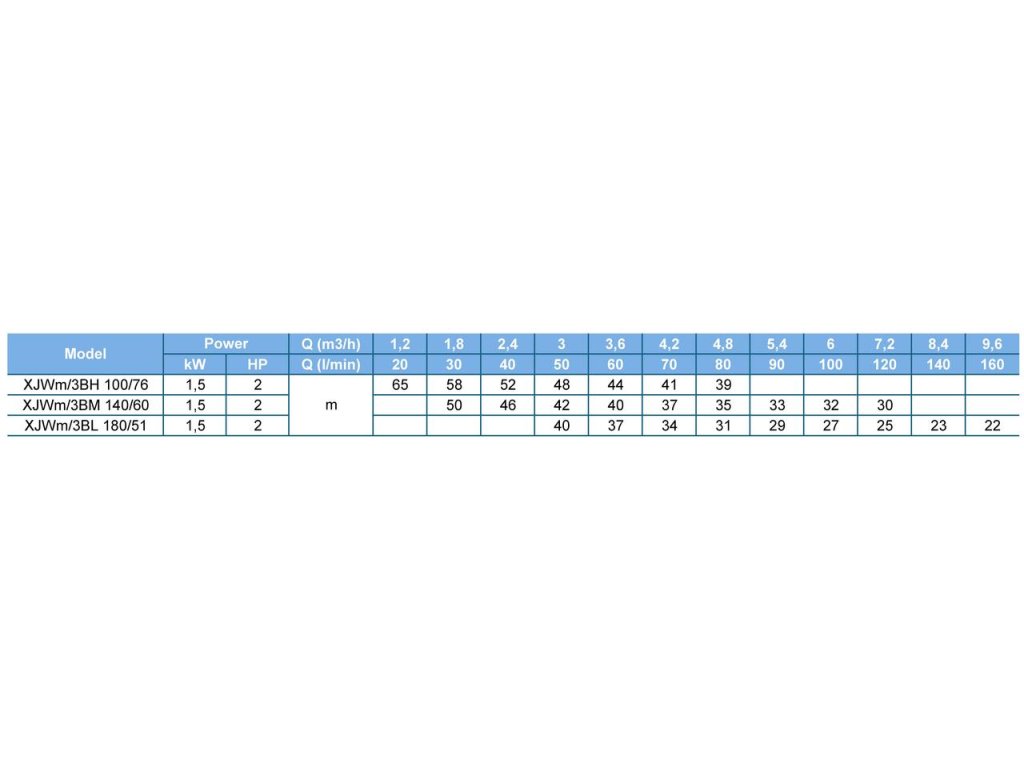 LEO XJWm/3BM je najvýkonnejší model v rade samonasávacích čerpadiel LEO. Motor s výkonom 1,5 kW umožňuje dosiahnuť tlak až 6 barov a prietok 140 l/min, vďaka čomu zvláda aj veľmi náročné aplikácie s veľkým odberom vody.