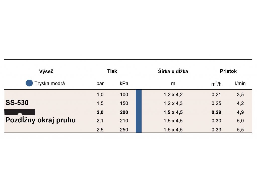 | Optimálny tlak: 2,1 bar | |