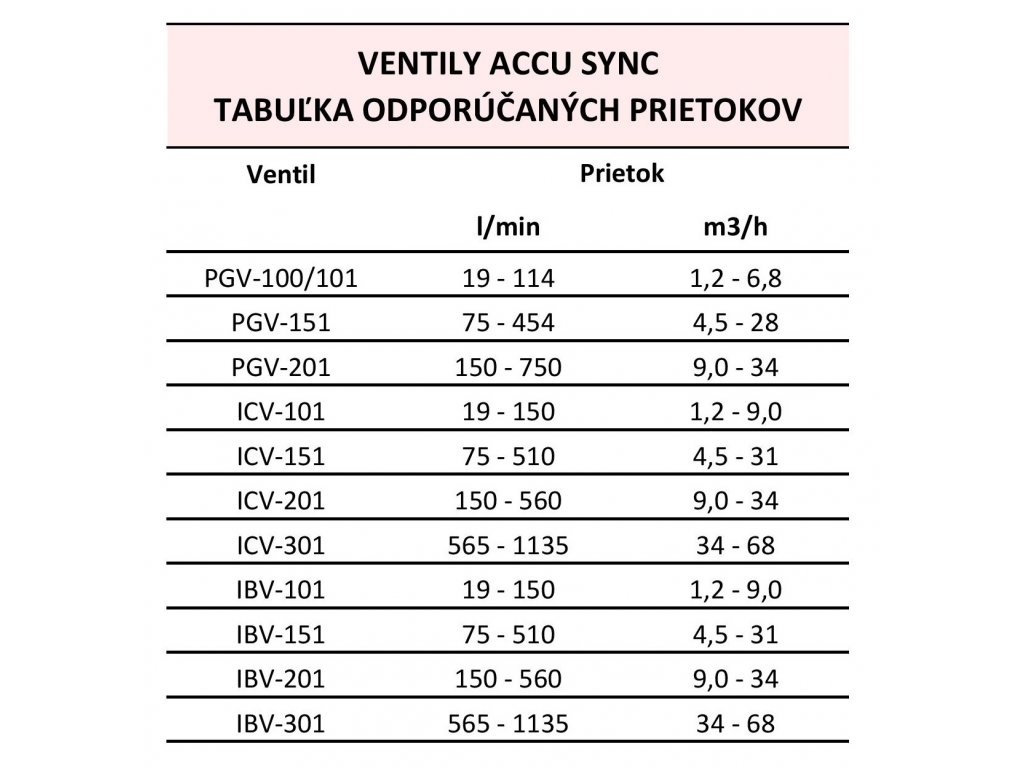 Pre všetky elektromagnetické ventily Hunter. Inštaláciou regulátora Accu Sync pod cievku ventilu dosiahnete zníženie výstupného tlaku z ventilu na hodnotu, ktorú si nastavíte, v rozmedzí od 1,4 do 6,9 bar. Pre verejné, komerčné alebo športové plochy s vyššími požiadavkami na vstupný tlak a nižšími na výstupný tlak.