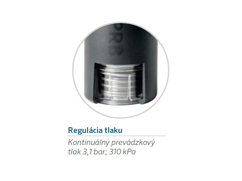 • Teleso s reguláciou tlaku (3,1 bar; 310 kPa) znižuje vysoký vstupný tlak a zvyšuje efektivitu