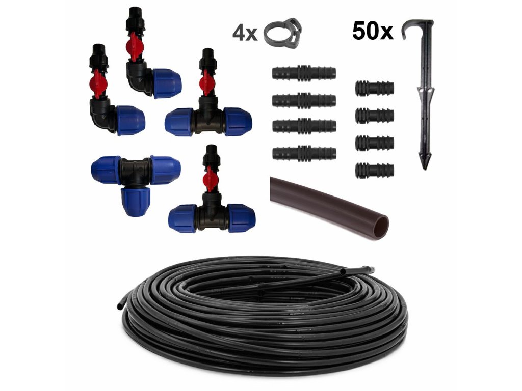 Sada beztlakovej kvapkovej závlahy pre 100 rastlín obsahuje všetko, čo potrebujete na efektívne zavlažovanie vašej úžitkovej záhrady. Táto kvapková hadica s dĺžkou 50m metrov na ploche 4 x 12,5 m privádza vodu priamo ku koreňom rastlín, čím zabezpečuje optimálnu hydratáciu bez plytvania vodou. Vďaka tomu rastie menej burín a polievanie je jednoduchšie a efektívnejšie. Ideálna na zavlažovanie zemiakov. Na pripojenie sady kvapkovej závlahy použite pripojenie s filtrom.
