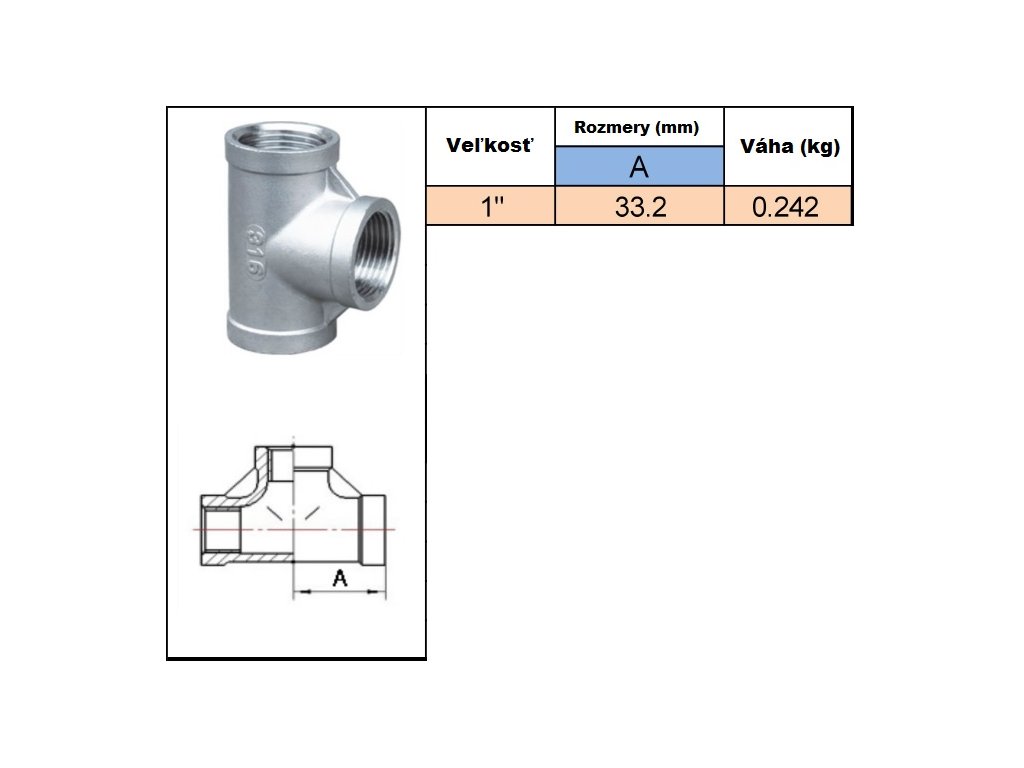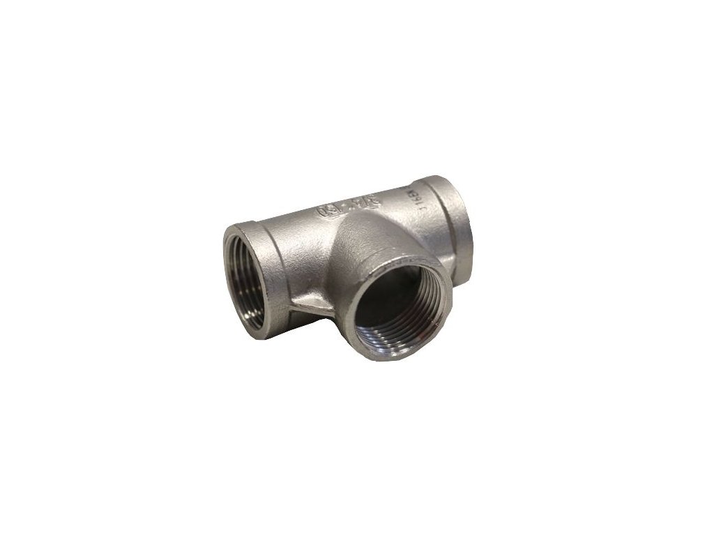 Nerezový T-kus so závitmi 3× vnútorný (FFF) v rozmere 1" je vyrobený z kvalitnej nehrdzavejúcej ocele AISI 316, známej svojou mimoriadnou odolnosťou voči korózii, kyselinám a morskej vode.