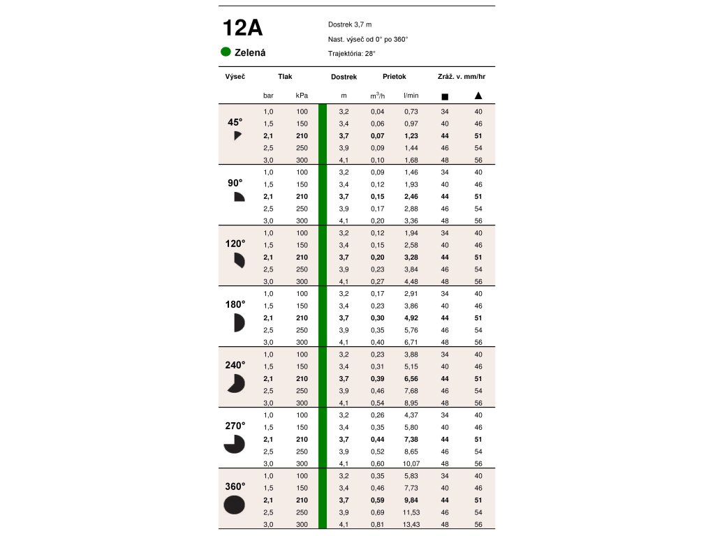Tryska Pro-A 12A – 3,7 m, 0–360°, zelená