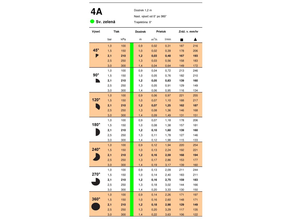Tryska Pro-A 4A – 1,2 m, 0–360°, zelená