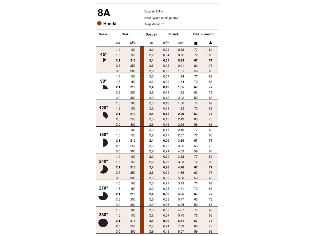 Tryska Pro-A 8A – 2,4 m, 0–360°, hnedá
