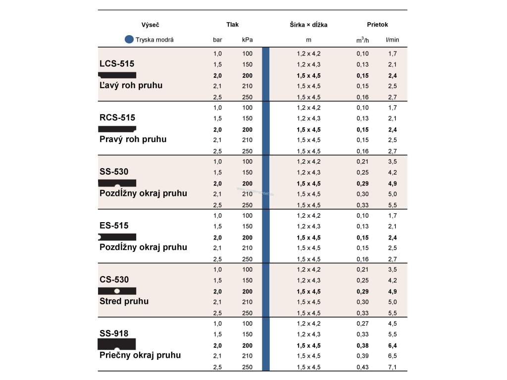 | ? | Typ: obdĺžniková tryska, pozdĺžny okraj pruhu |