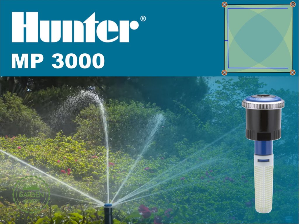 Tento inštalačný set závlahy Hunter je ideálnym riešením pre väčšie trávnikové plochy. Využíva presné rotačné trysky Hunter MP Rotator 3000, ktoré pracujú v rozsahu dostreku od 6,8 do 9,1 metra a s nastaviteľným uhlom výseče od 90° do 210°.