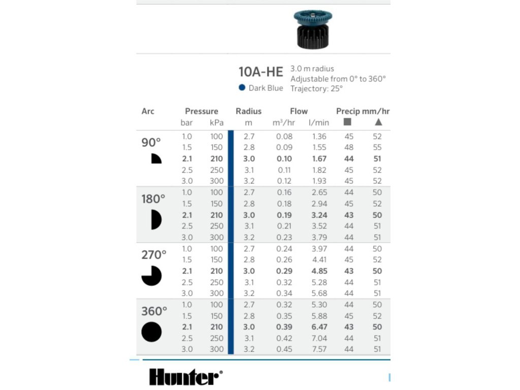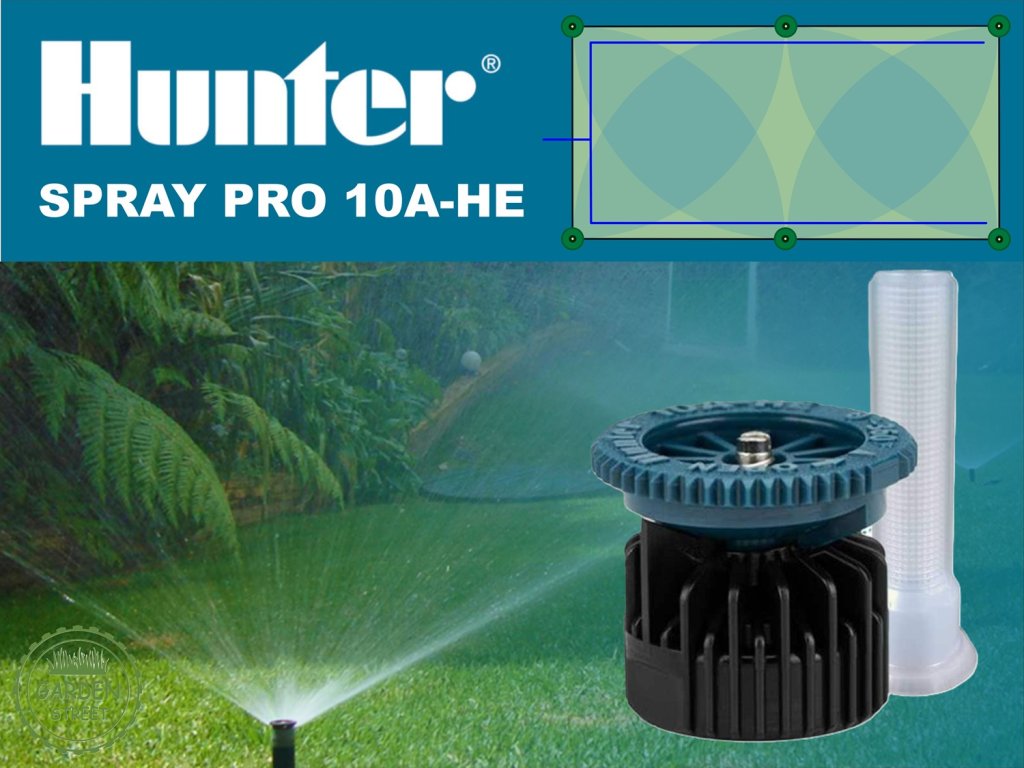 Tento závlahový set je určený pre menšie až stredné obdĺžnikové trávniky a pásy zelene, ktoré vyžadujú rovnomerné a spoľahlivé zavlažovanie. Tryska Hunter 10A-HE poskytuje sprayový postrek s maximálnym dosahom 3 × 6 m, čo je ideálne pre dlhšie a širšie plochy. Jemný a stabilný rozptyl vody zabezpečuje kvalitné pokrytie celej zavlažovanej oblasti bez nadmerných presahov.