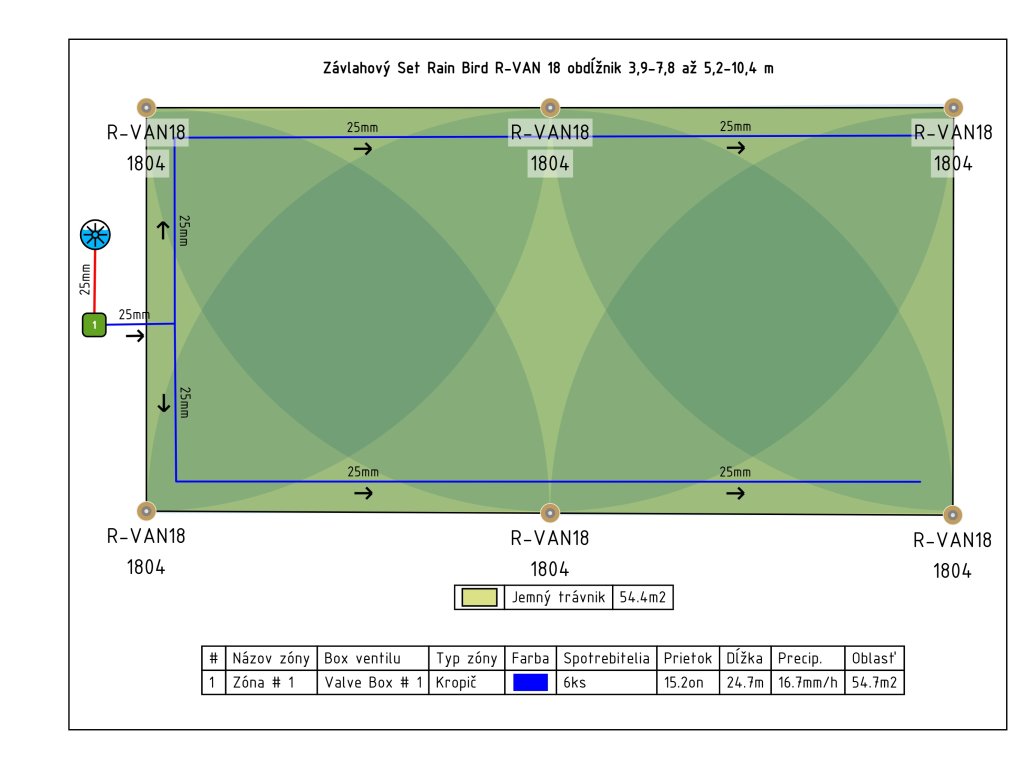 Závlahový set Rain Bird R-VAN 18 obdĺžnik je vhodný pre: